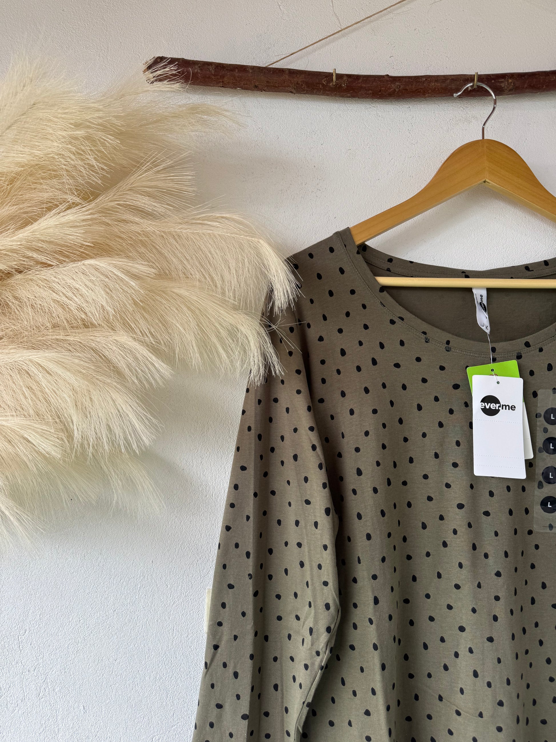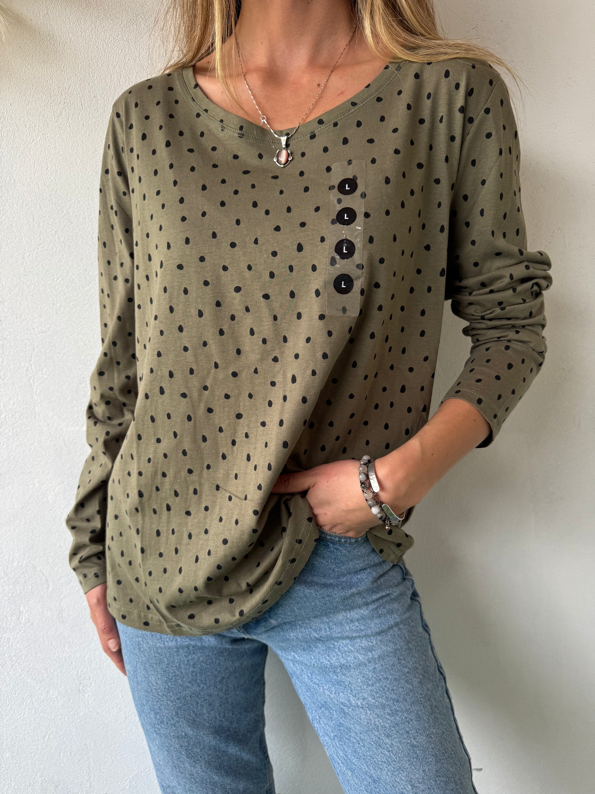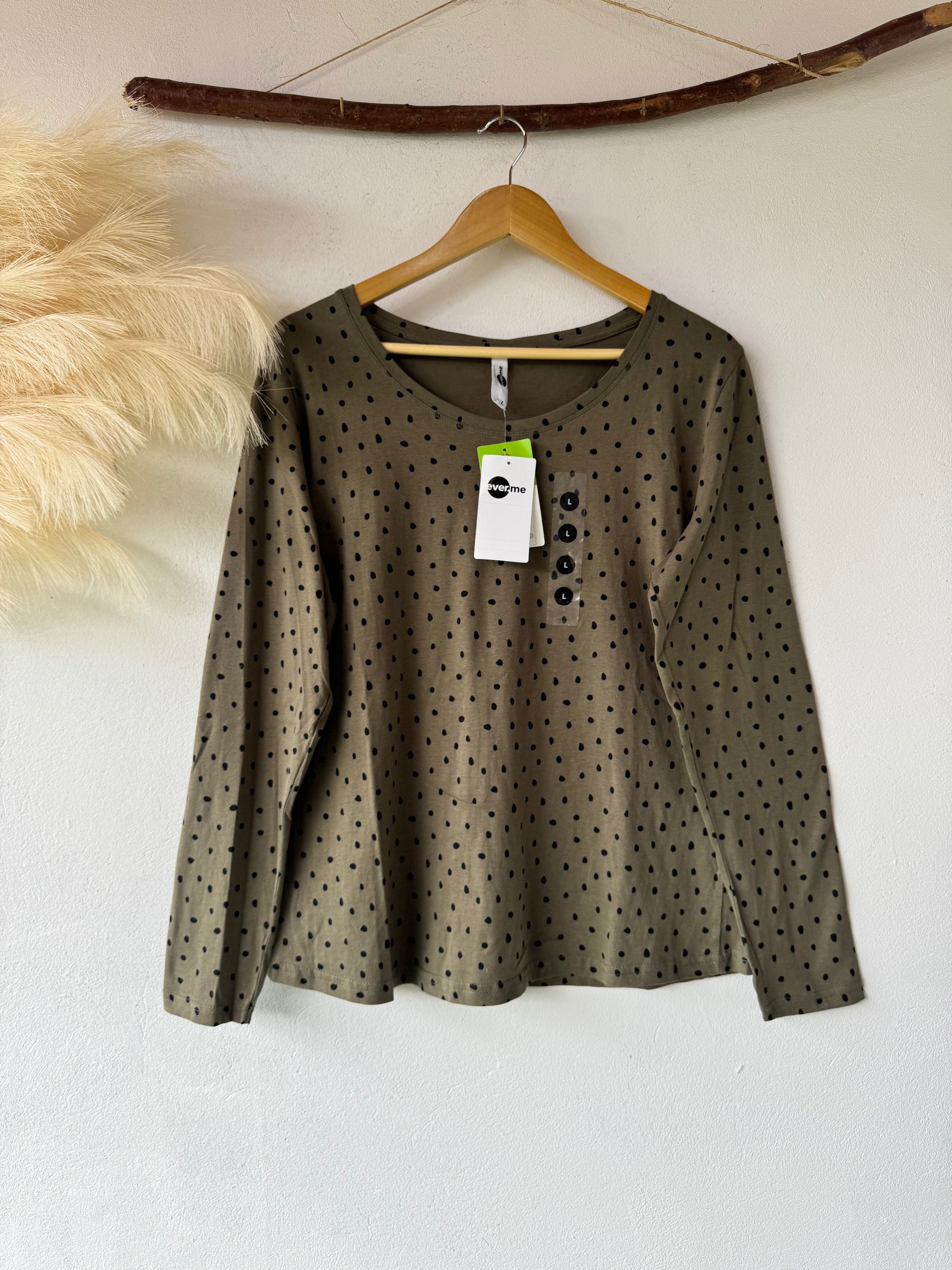 🌿 Polera verde musgo diseño de lunares 100% algodón